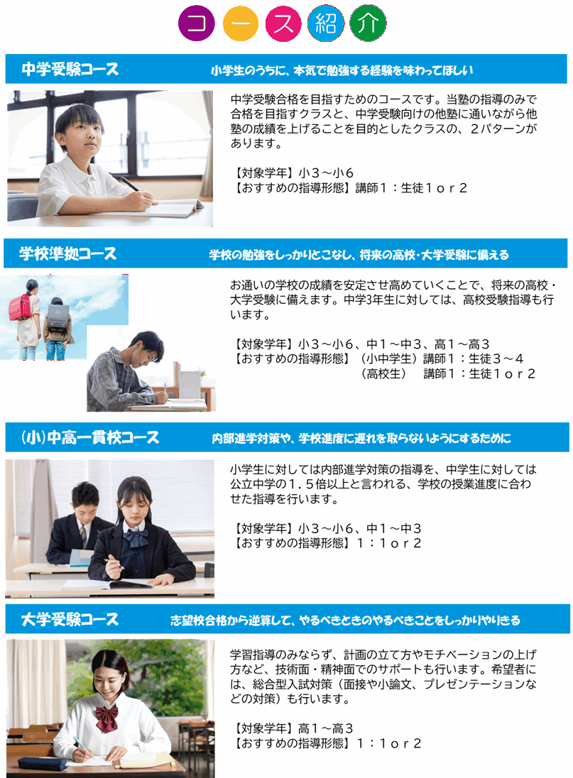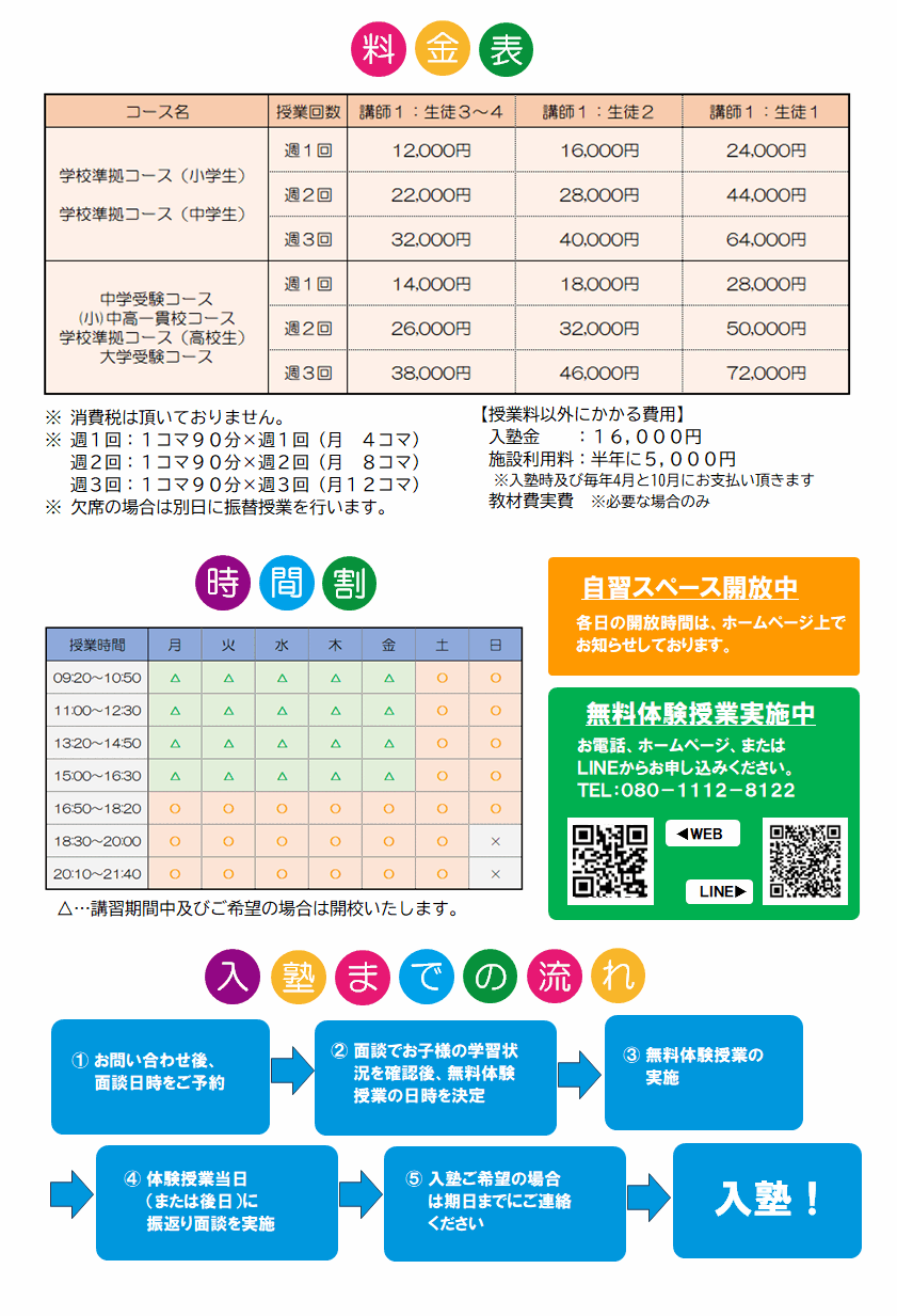 勉強についてお困りのことがあれば、ぜひご連絡ください。学習相談も無料で行っております。